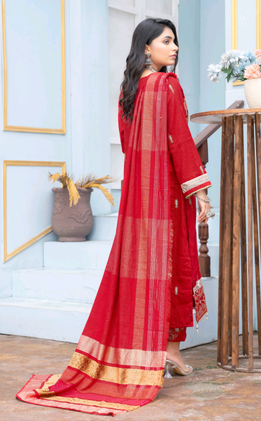 3 Pc Unstitched Printed Khaddar Suit | 501-A