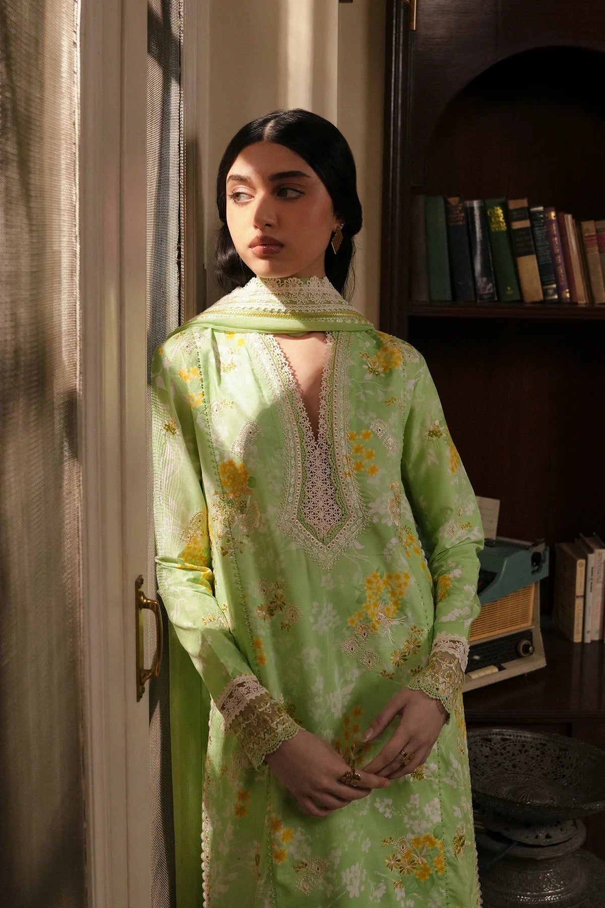 AFROZEH Florette'26 Ciel FWU-0044-3PO Green Brings Elegant, Sophisticated And Timeless Charm. The Printed Lawn Green Digital Printed Embroidered Front Center Panel, Front Right Panel, Front Left Panel, Digital Printed Back (1 M), And Digital Printed Embroidered Sleeves (2 Pcs) Feature Beautiful Digital Print Combined With Exquisite Embroidery On Premium Lawn That Gives A Soft, Breathable, And High-End Appearance.