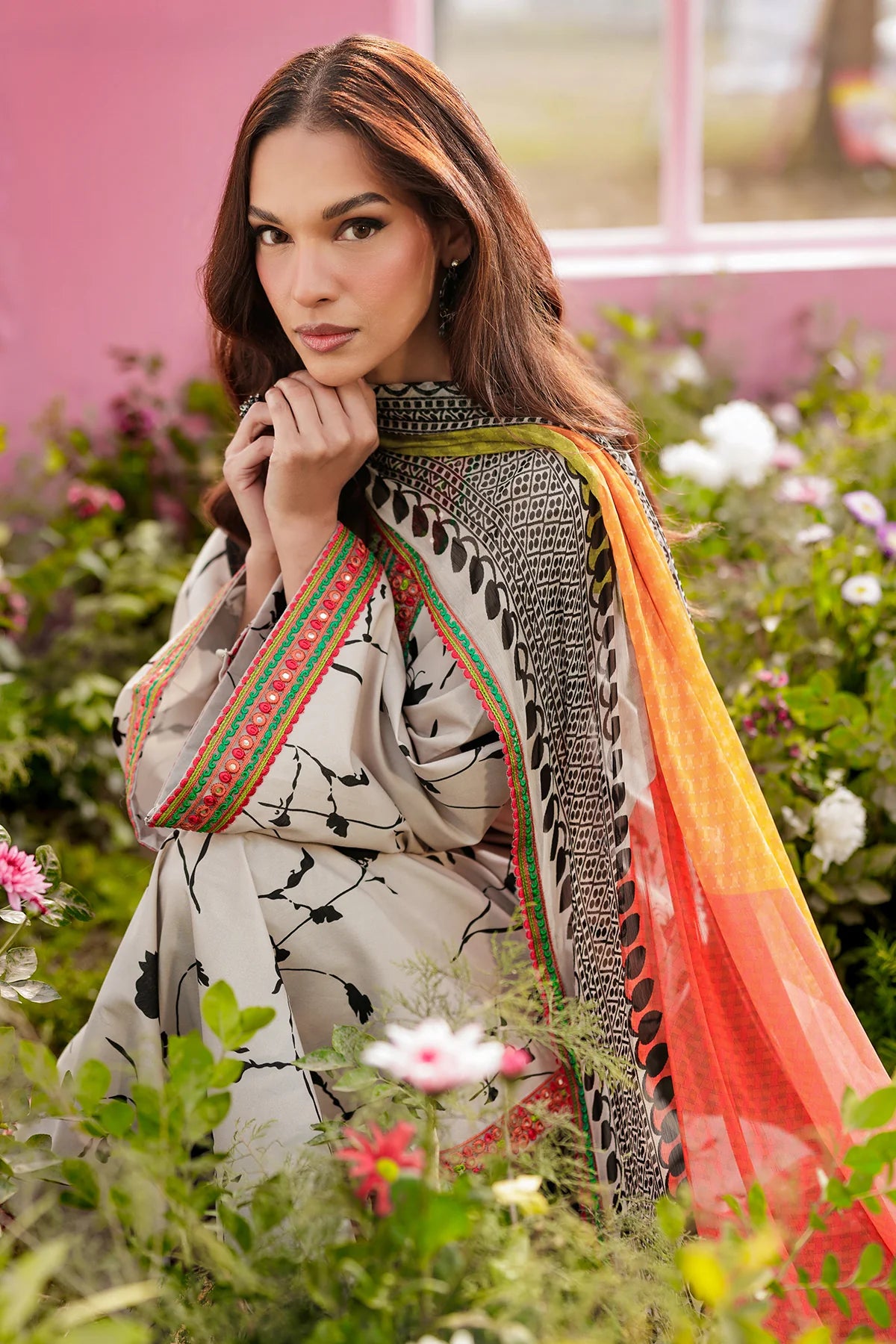 Beautiful Embroidered Printed Lawn In CHARIZMA RANG-E-BAHAR Unstitched Lawn Collection CRB6-02 — Embroidered Printed Lawn Shirt With Front, Sleeves, Back, Chok Patti, Dupatta Pallu Patti, Embroidered Printed Chiffon Dupatta, And Printed Cotton Trouser. Perfect For Summer, Eid, Festive Occasions, And Luxurious Graceful Look.