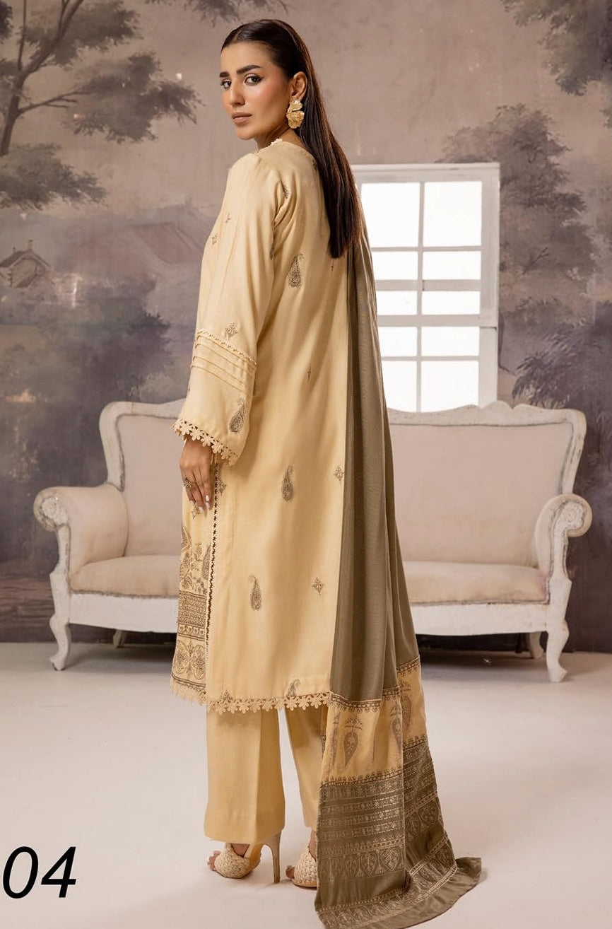 Apna pasandida winter look banayein COLORUM Premium Mun Passand Design-04 ke saath — soft leather peach embroidery shirt aur rich wool embroidered shawl. Perfect for daily wear, office, aur cozy shaam.