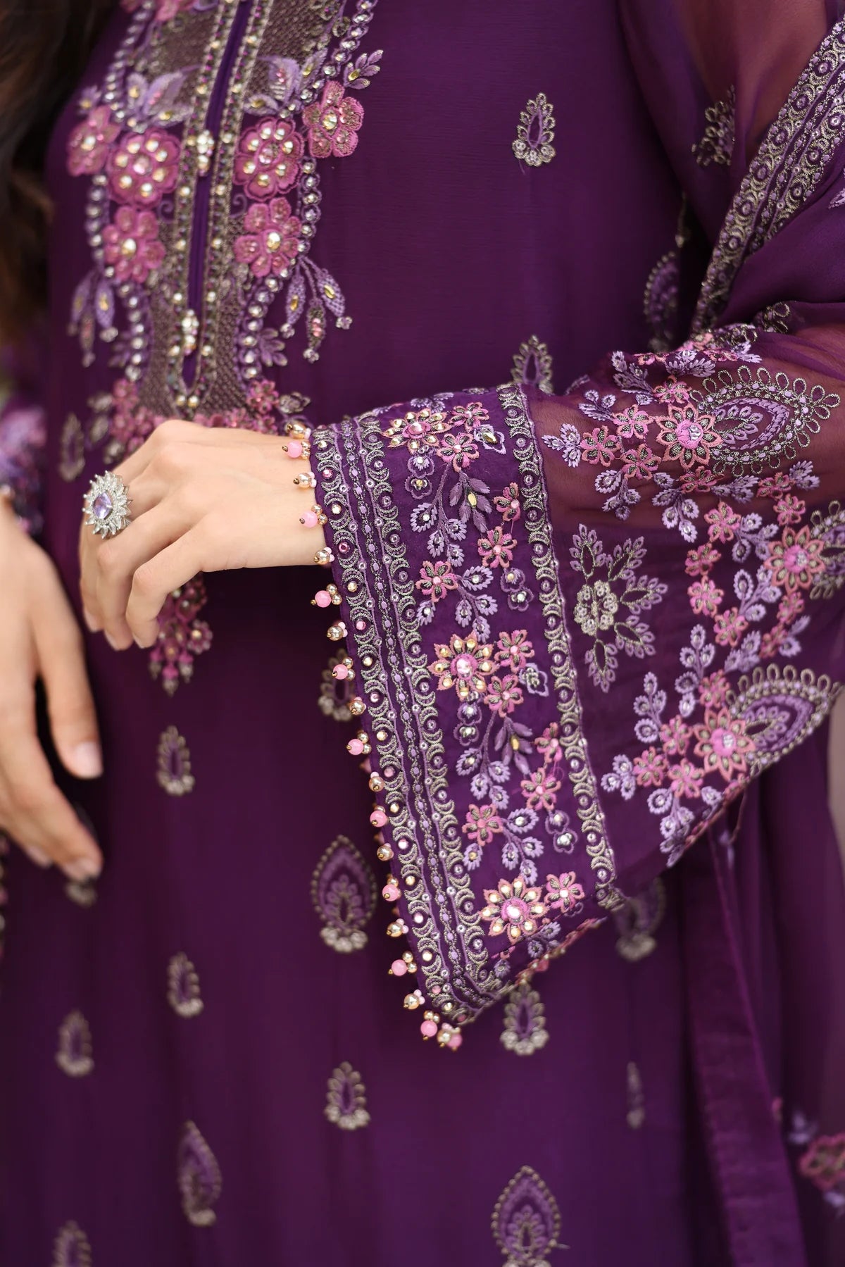 - Embroidered Chiffon Slevees