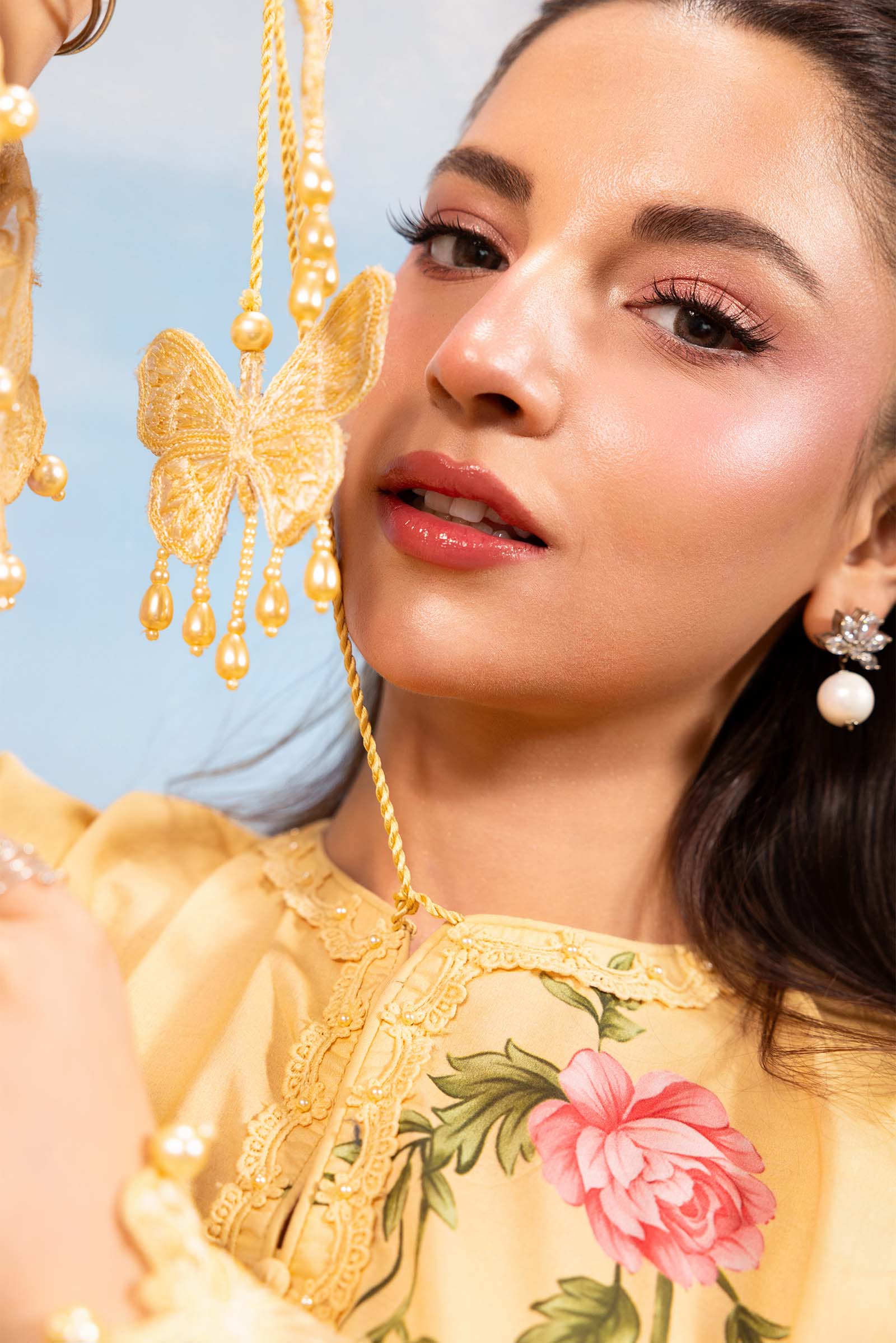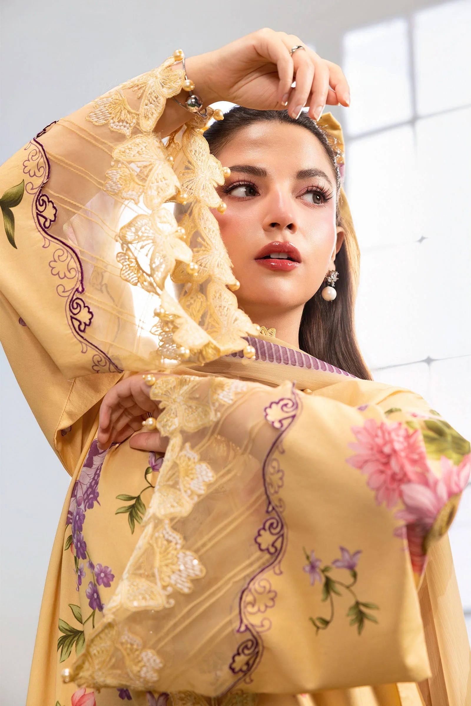 M.Basic By MARIA.B. Dreamscape MB-CUSV14-04B Brings Fresh, Elegant And Timeless Charm. The Printed Lawn Shirt Features Beautiful Print On Premium Lawn With Delicate Embroidered Patti That Gives A Soft, Breathable, Vibrant, And High-End Appearance In A Stunning Pale Yellow Hue.