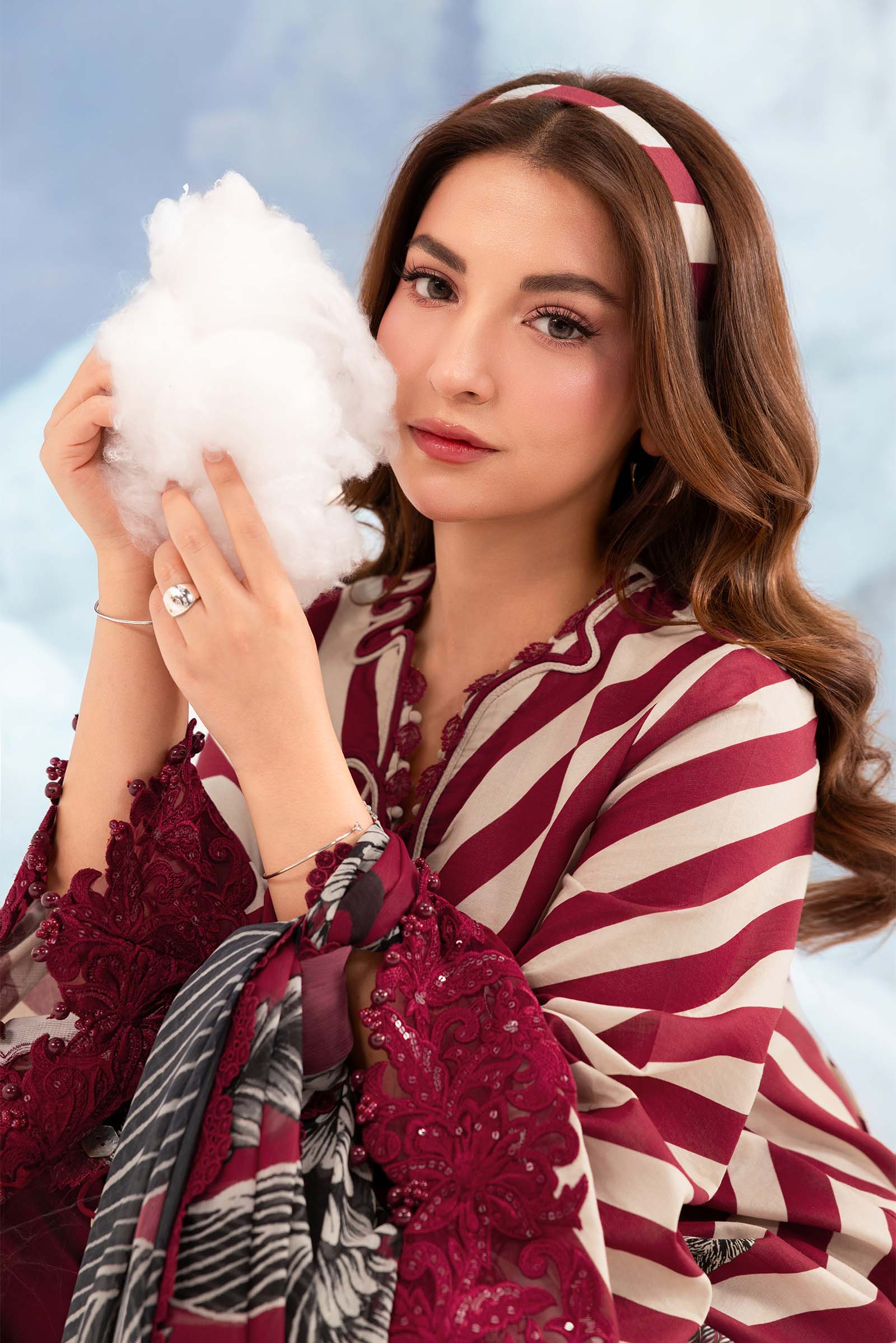 M.Basic By MARIA.B. Dreamscape MB-CUSV14-08B Brings Fresh, Elegant And Timeless Charm. The Printed Lawn Shirt Features Beautiful Print On Premium Lawn With Delicate Embroidered Patti That Gives A Soft, Breathable, Vibrant, And High-End Appearance In A Stunning Red Hue.