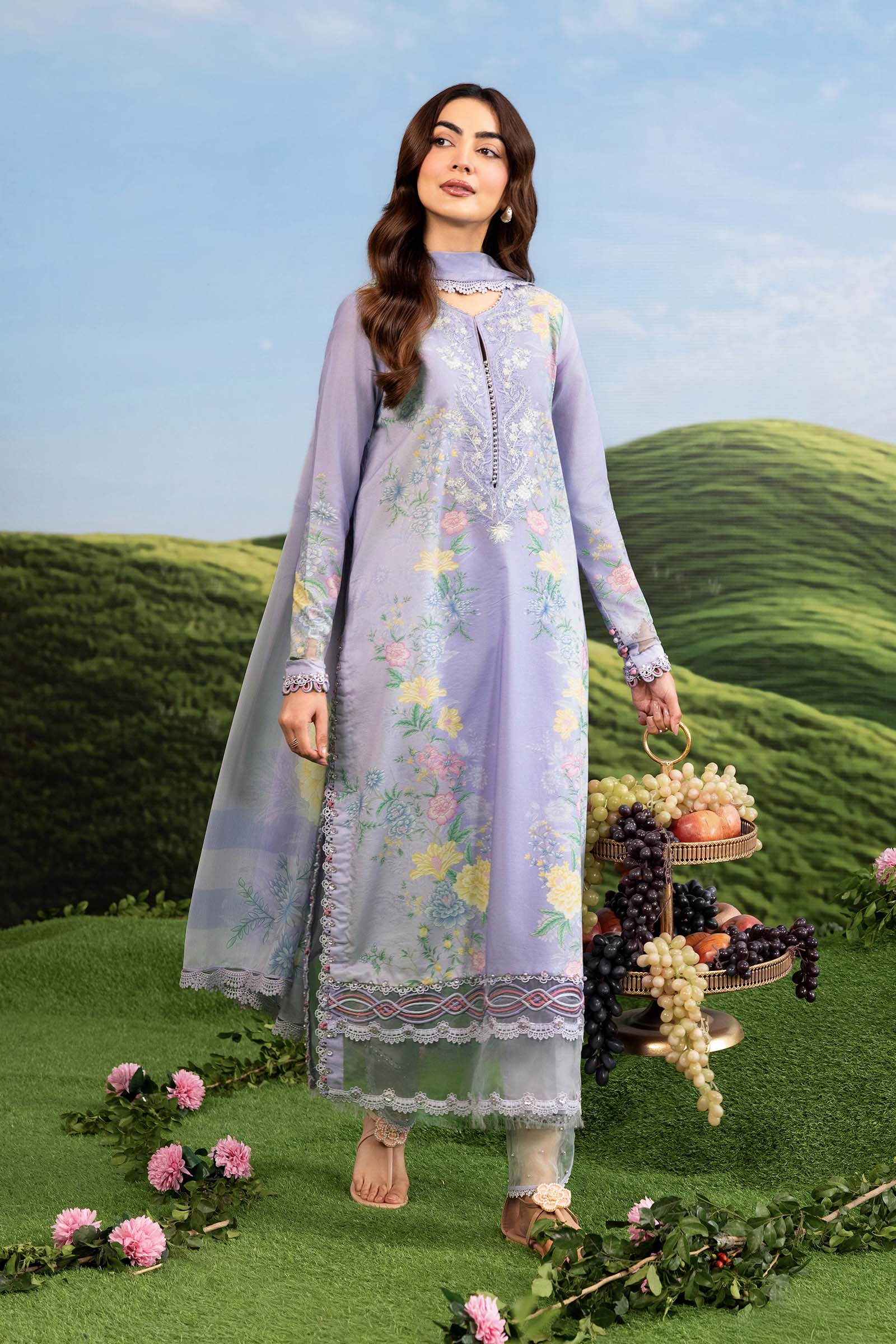M.Basic By MARIA.B. Dreamscape MB-CUSV14-11B Brings Fresh, Elegant And Timeless Charm. The Printed Lawn Shirt Features Beautiful Print On Premium Lawn With A Stunning Embroidered Neck Patch That Gives A Soft, Breathable, Vibrant, And High-End Appearance In A Beautiful Purple Hue.