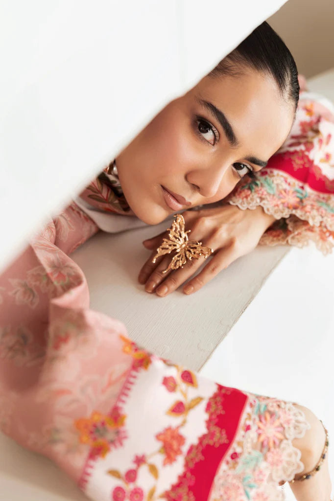 Grace your winter wardrobe with RajBari Nissa Marina Premium – Article 12, a 3-piece unstitched masterpiece featuring an embroidered & printed marina front, digital printed sleeves and back, and a digital printed shawl. With embroidered laces and hem borders, this ensemble radiates refined charm and traditional elegance — perfect for festive and casual gatherings alike.
