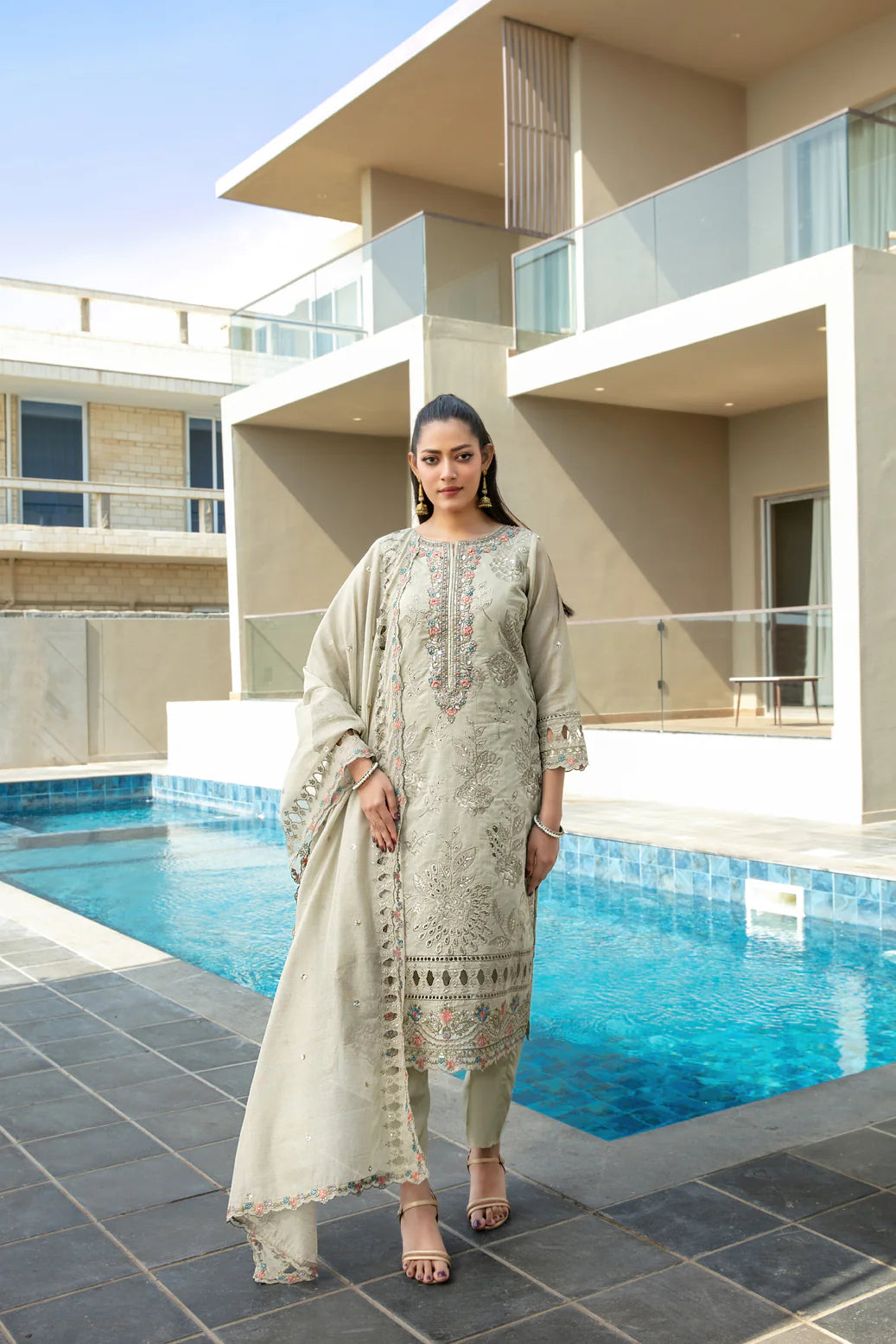 Embroidered Fancy Khaddi Dupatta Is Lightweight, Flowy, And Luxurious — With Fine Embroidery That Adds Graceful Movement And Premium Sophistication.