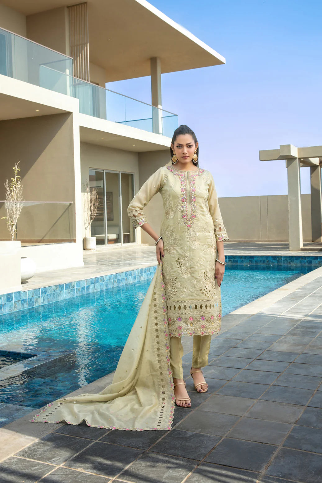 Embroidered Fancy Khaddi Dupatta Is Lightweight, Flowy, And Luxurious — With Fine Embroidery That Adds Graceful Movement And Premium Sophistication.