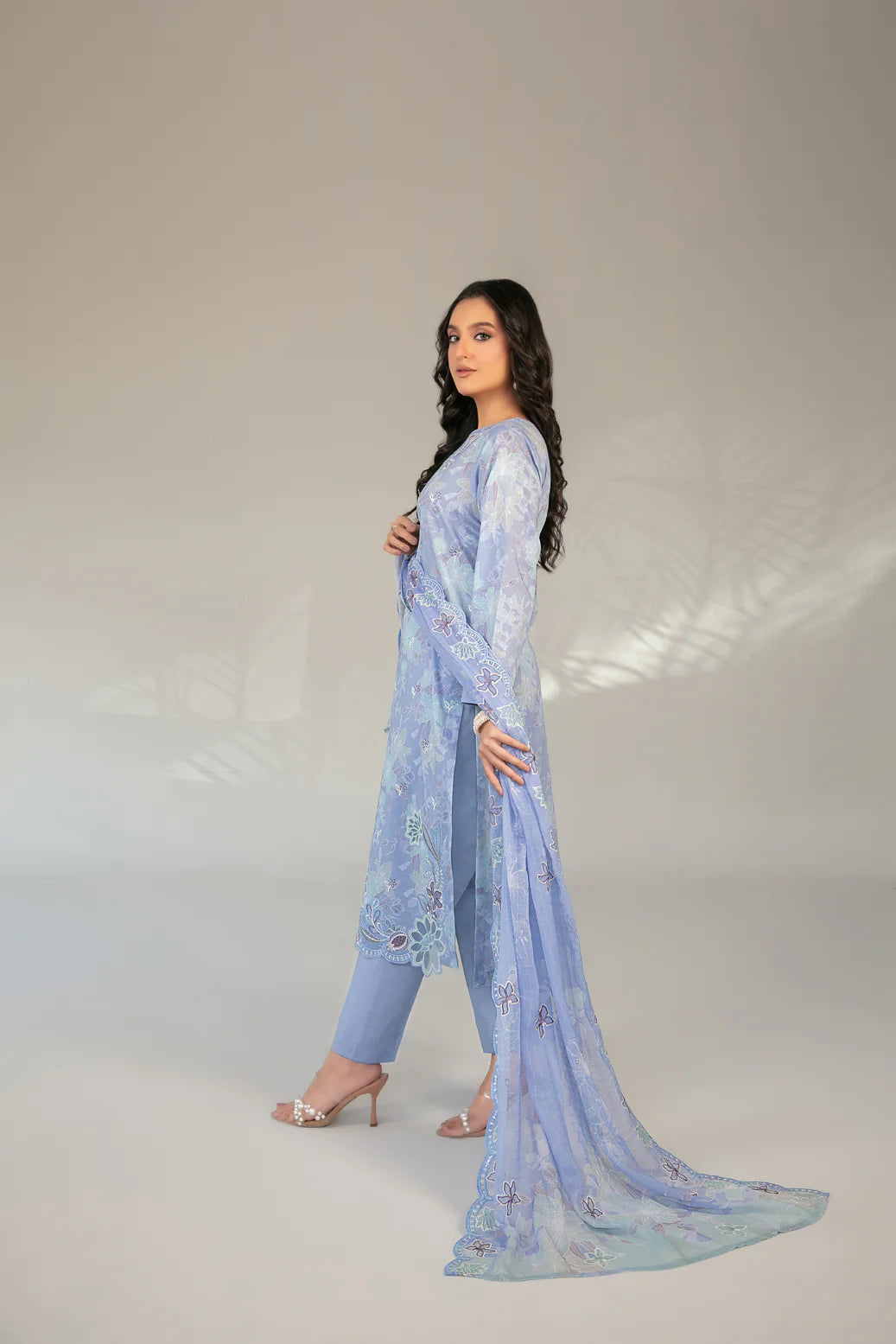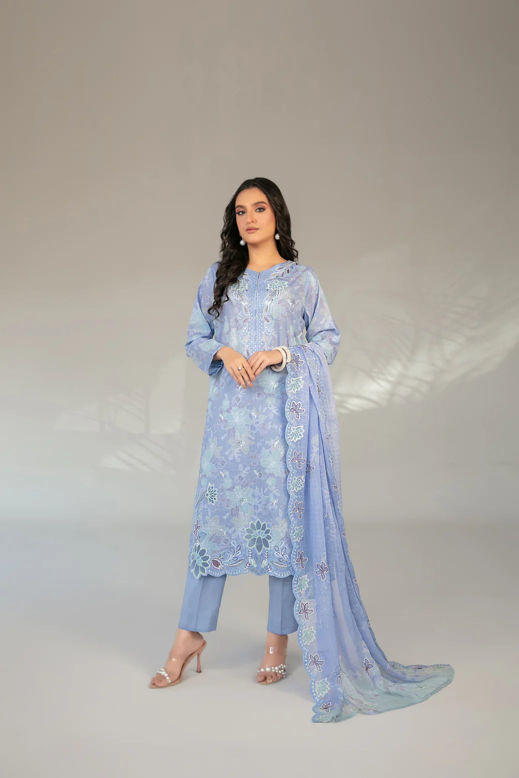 ✔️ Dupatta: Cutwork Embroidered Digital Printed Chiffon – Lightweight, Flowy