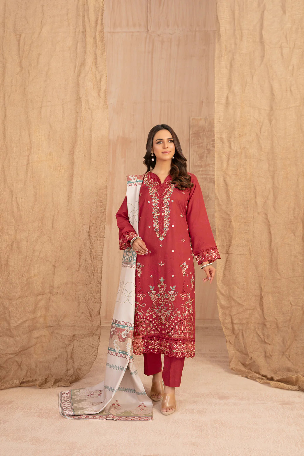 Stay warm & elegant with TAWAKKAL Cassa D-5401 — a cozy un-stitched embroidered digital printed dhanak shirt, exclusive broshia banarsi shawl dupatta, and digital printed dhanak shalwar. Perfect for winter days, casual outings, and soft glamour.