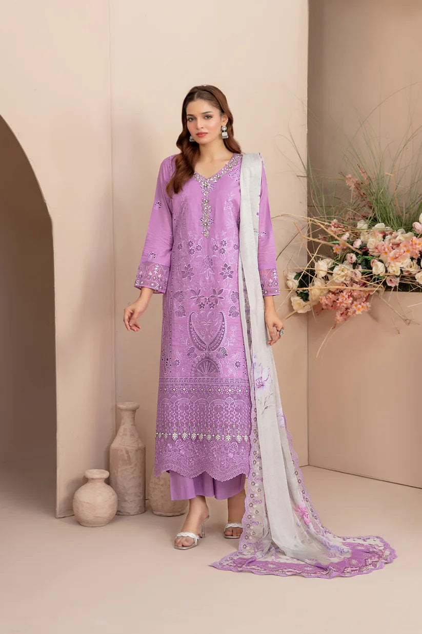 - Semi-Stitched Fancy Embroidered Slub Lawn Shirt with Embellishments