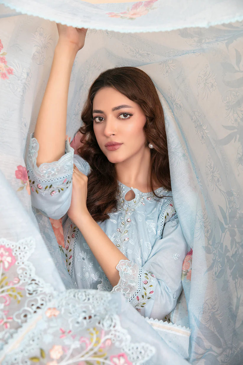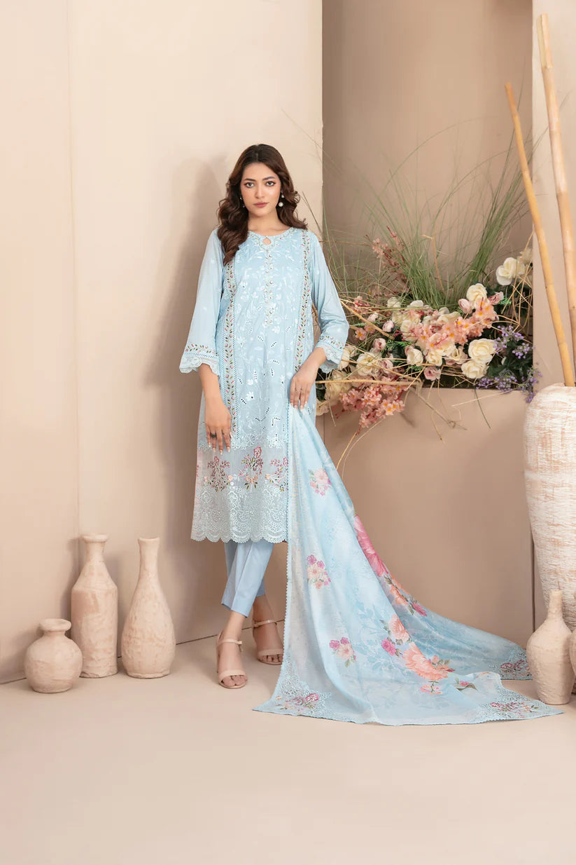 - Semi-Stitched Fancy Embroidered Slub Lawn Shirt with Embellishments