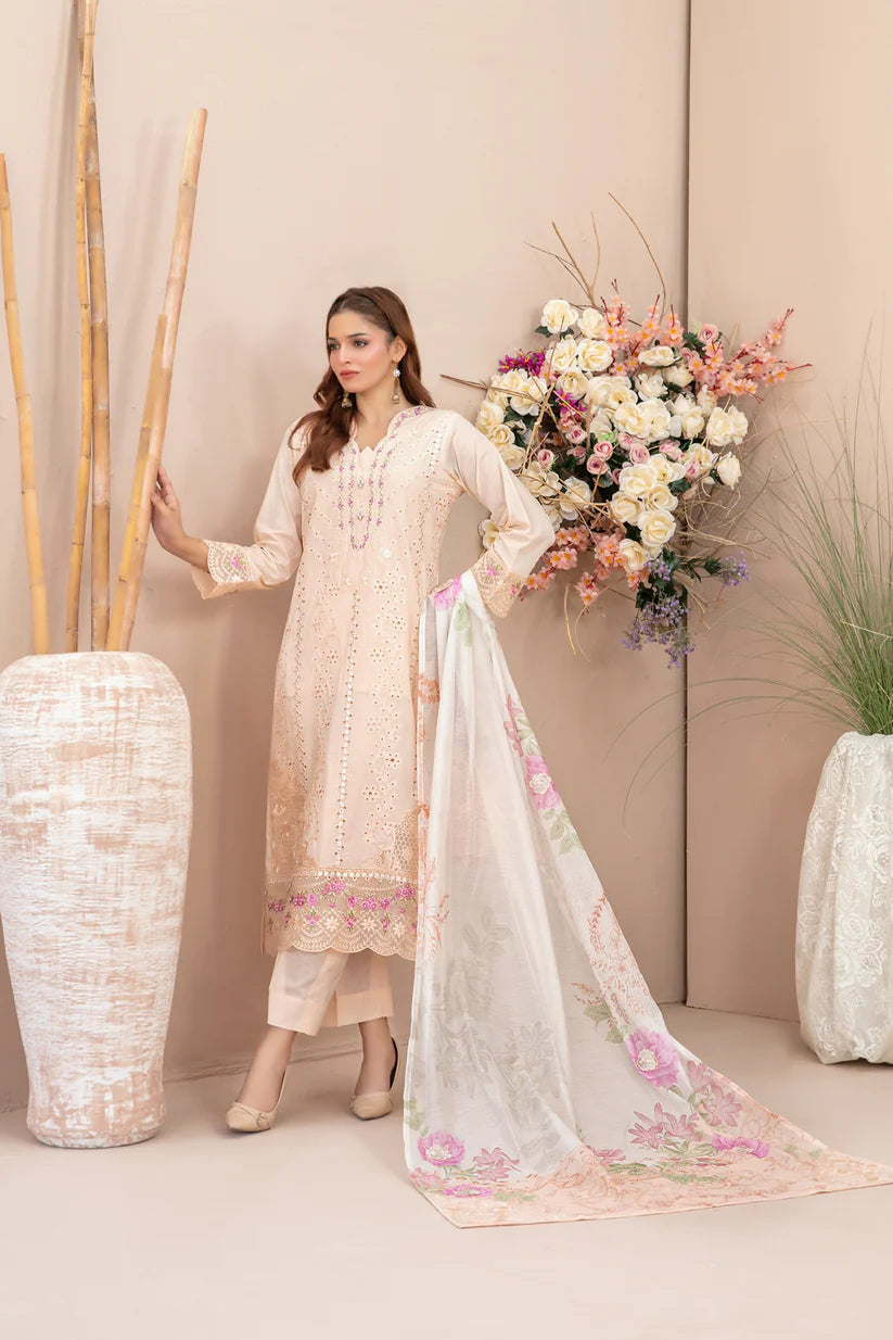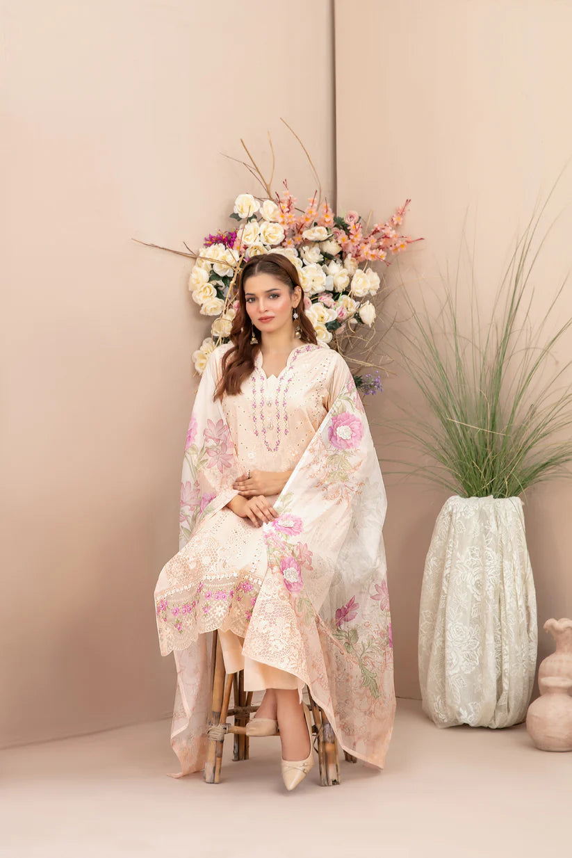 - Semi-Stitched Fancy Embroidered Slub Lawn Shirt with Embellishments