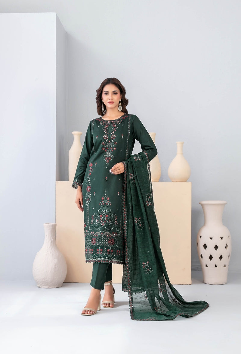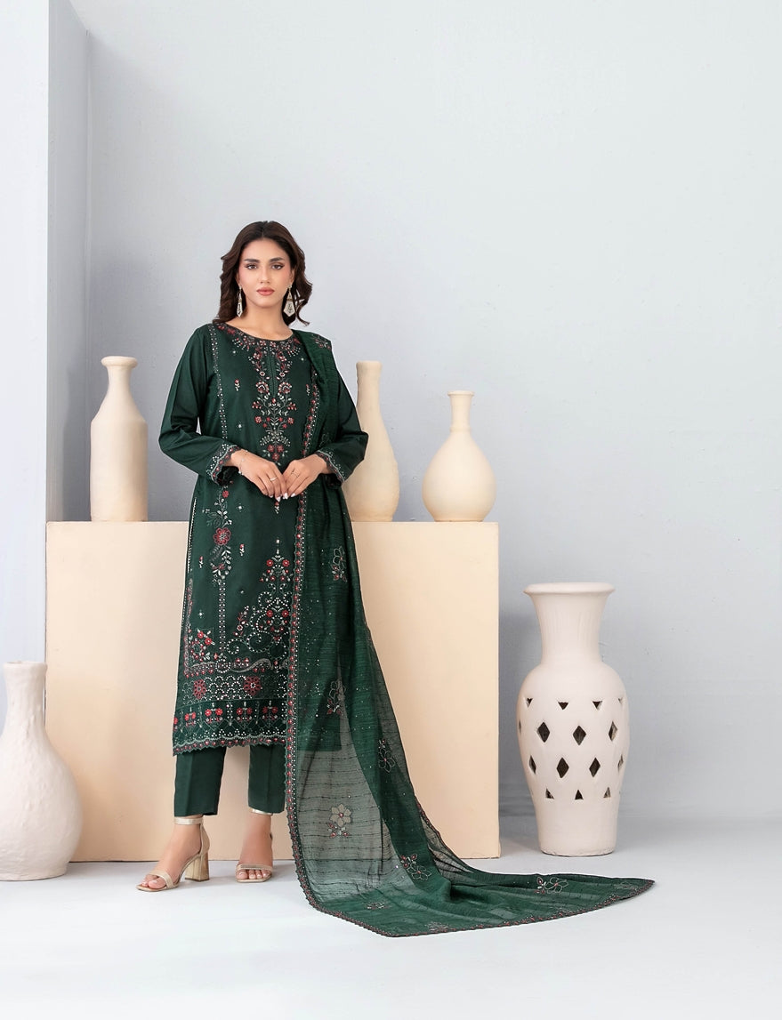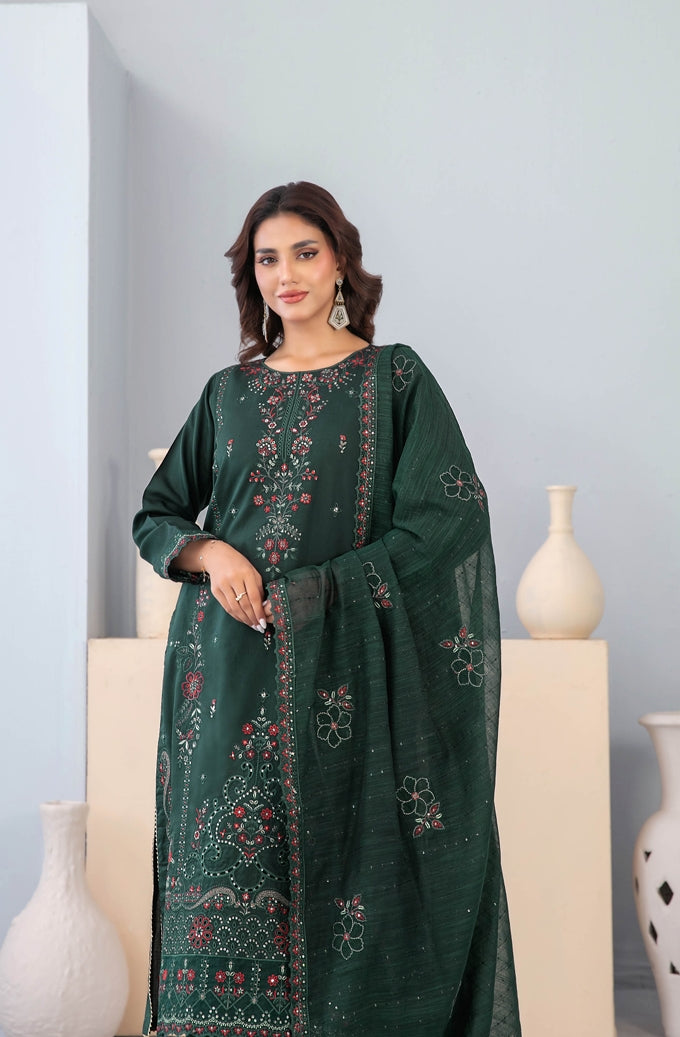 Elevate your winter wardrobe with Tawakkal Syera D-4451, a stunning 3-piece unstitched embroidered viscose slub suit that defines elegance and comfort.