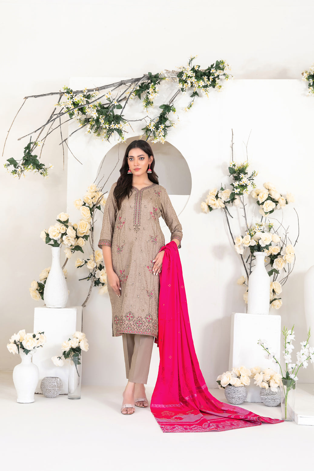 Introducing the 100% Original Brand Tawakkal – Yumna Collection, now available at Own Style Fabrics – Islamabad (G-9 Markaz). This unstitched 3-piece ensemble is crafted from premium fabrics, designed to bring elegance and sophistication to your festive wardrobe.