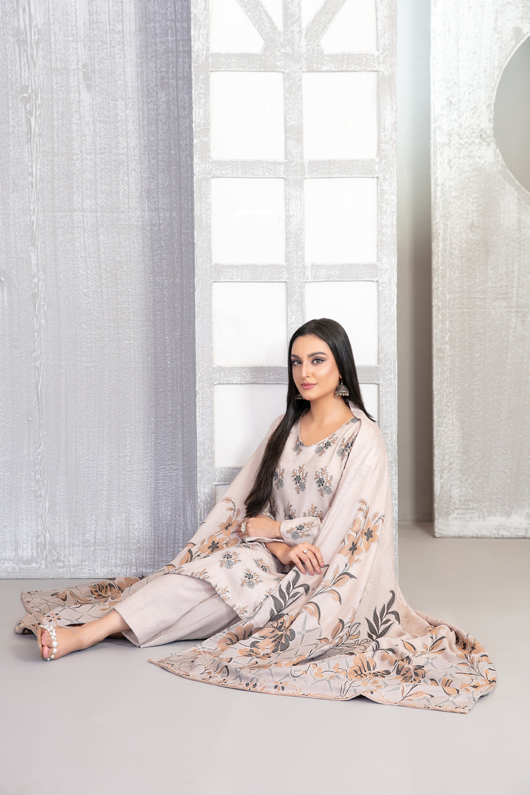 100% Original Brand Tawakkal – Lehr Vol-2 unstitched 3-piece broshia boti leather peach suit featuring an exclusive embroidered shirt, matching fancy shawl dupatta, and plain leather peach shalwar fabric. A graceful and timeless choice for casual and semi-formal wear.