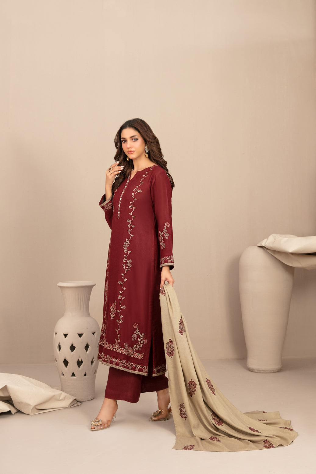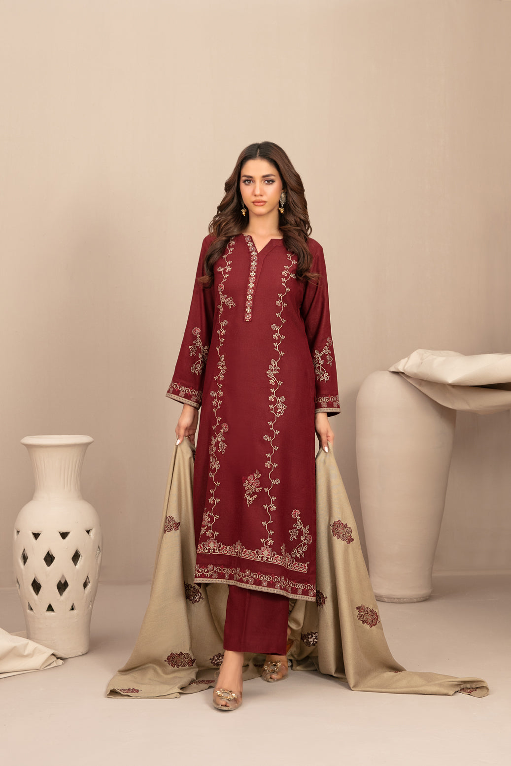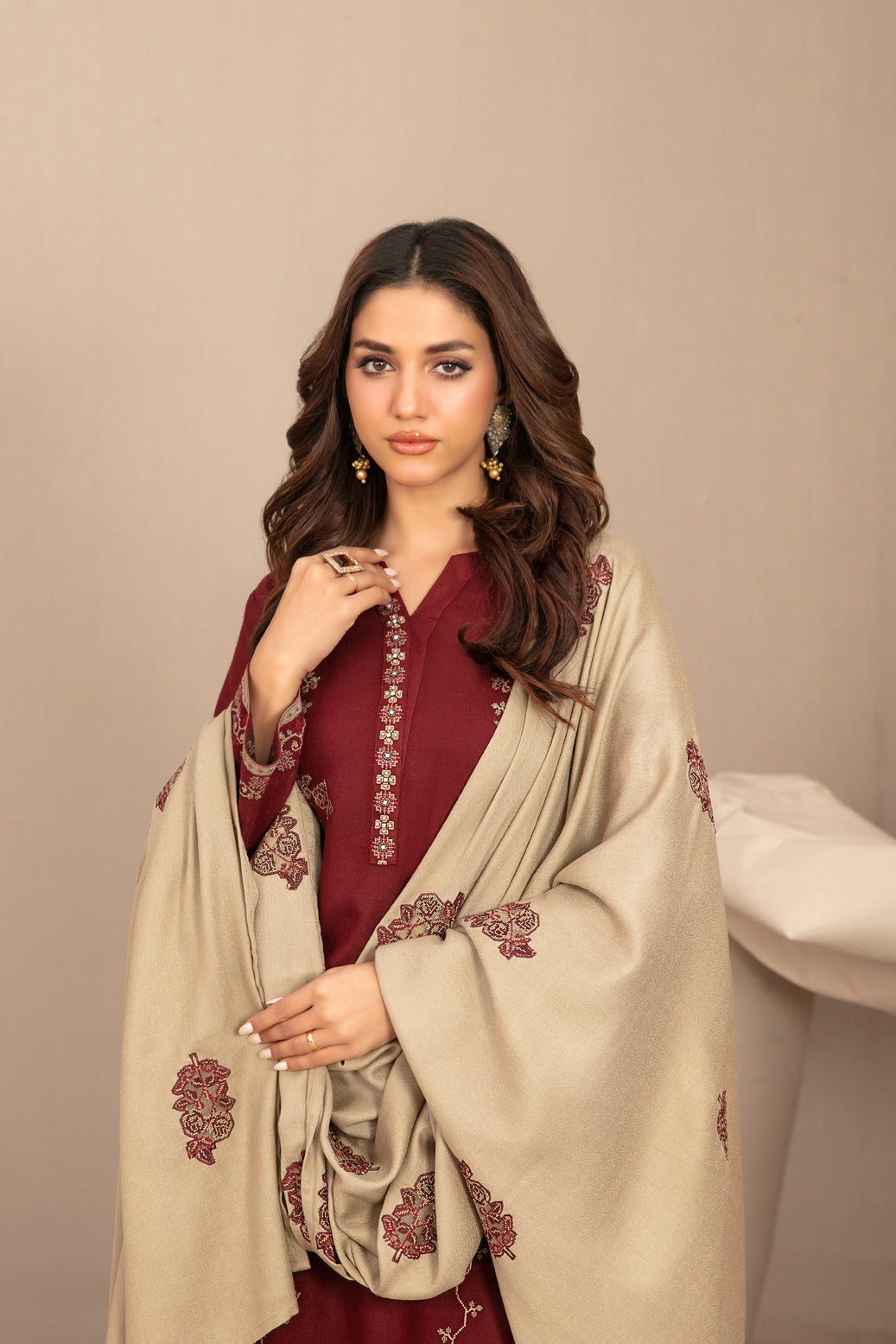 The semi-stitched embroidered shirt offers versatility in fitting and style, while the embroidered shawl adds an extra layer of luxury to your festive or formal look.
