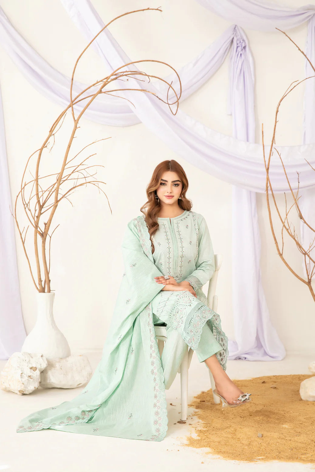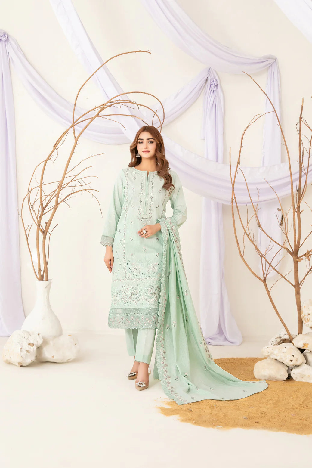 Un-stitched embroidered ayudia shirt designs offer soft texture and delicate detail, paired with exclusive embroidered ayudia dupatta that adds graceful flow.