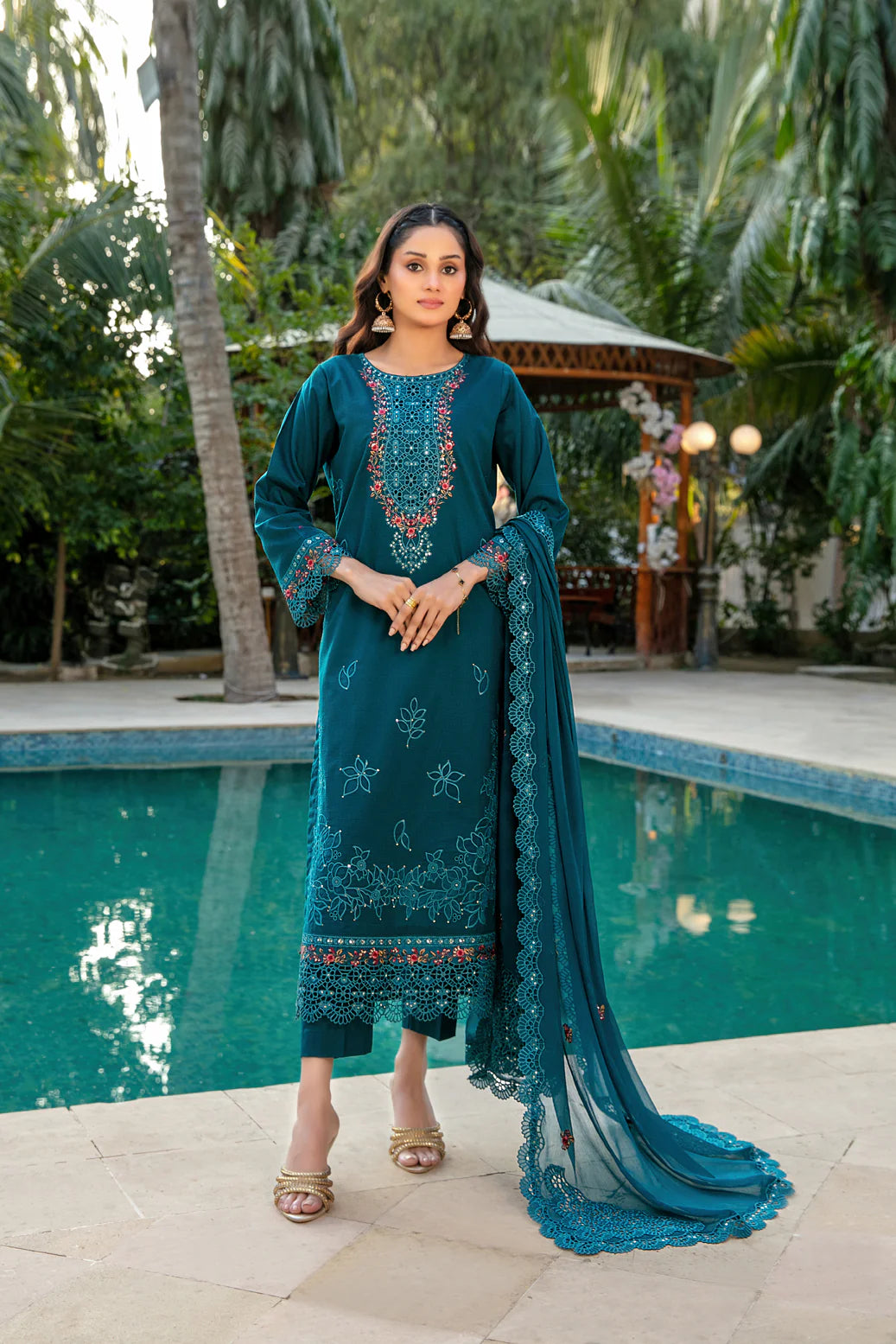 Exclusive Fancy Laserkari Embroidered Lawn In TAWAKKAL NAYIRI D-2759 — Un-Stitched Fancy Laserkari Embroidered Lawn Shirt, Exclusive Fancy Embroidered Chiffon Dupatta, And Un-Stitched Plain Cotton Shalwar. Perfect For Summer, Eid, Festive Occasions, And Luxurious Graceful Look.