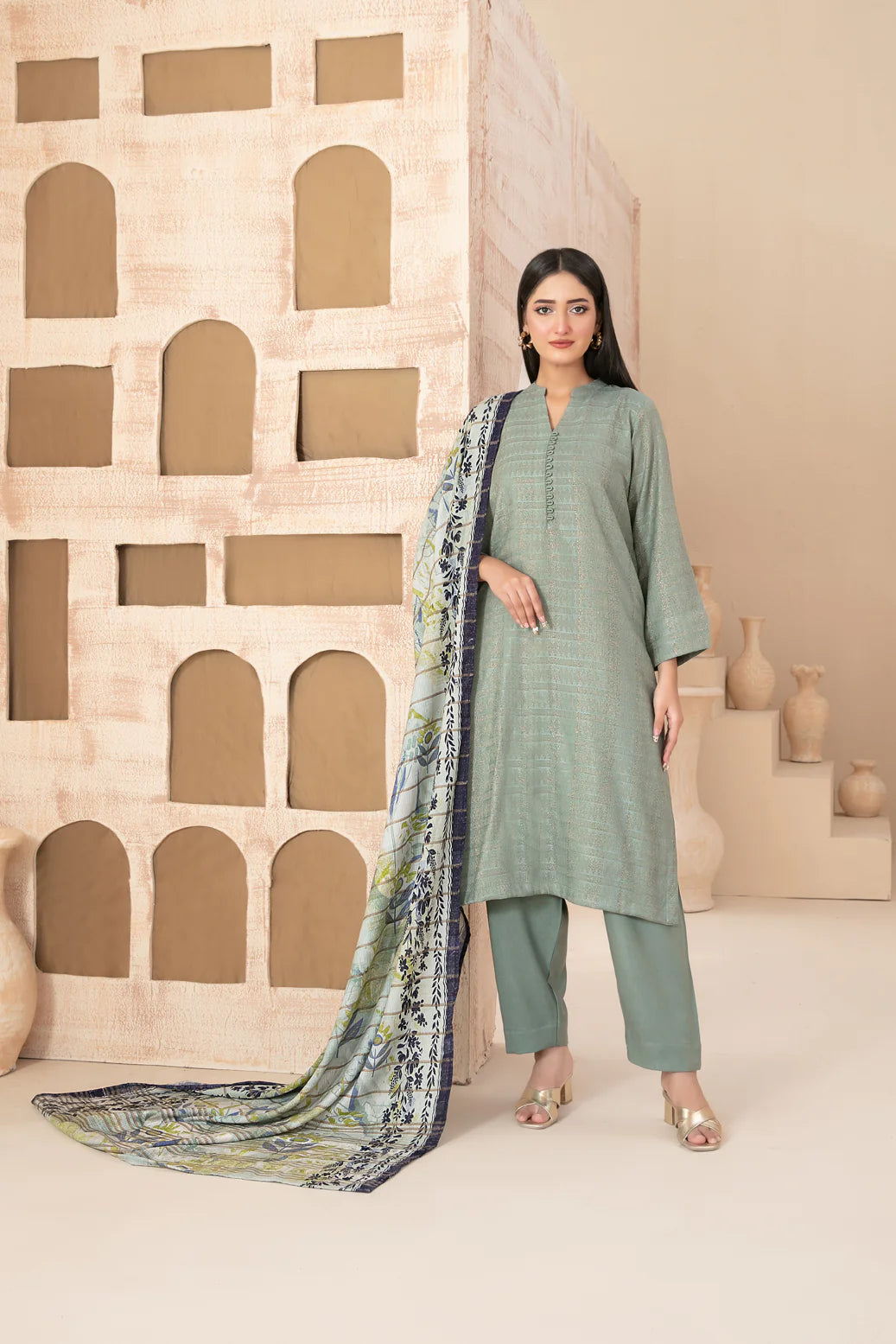 Stay cozy & chic with TAWAKKAL Nissa D-5442 — a soft unstitched fancy leather peach shirt, exclusive digital printed leather peach shawl dupatta, and plain leather peach shalwar. Perfect for winter days, casual outings, and effortless style.